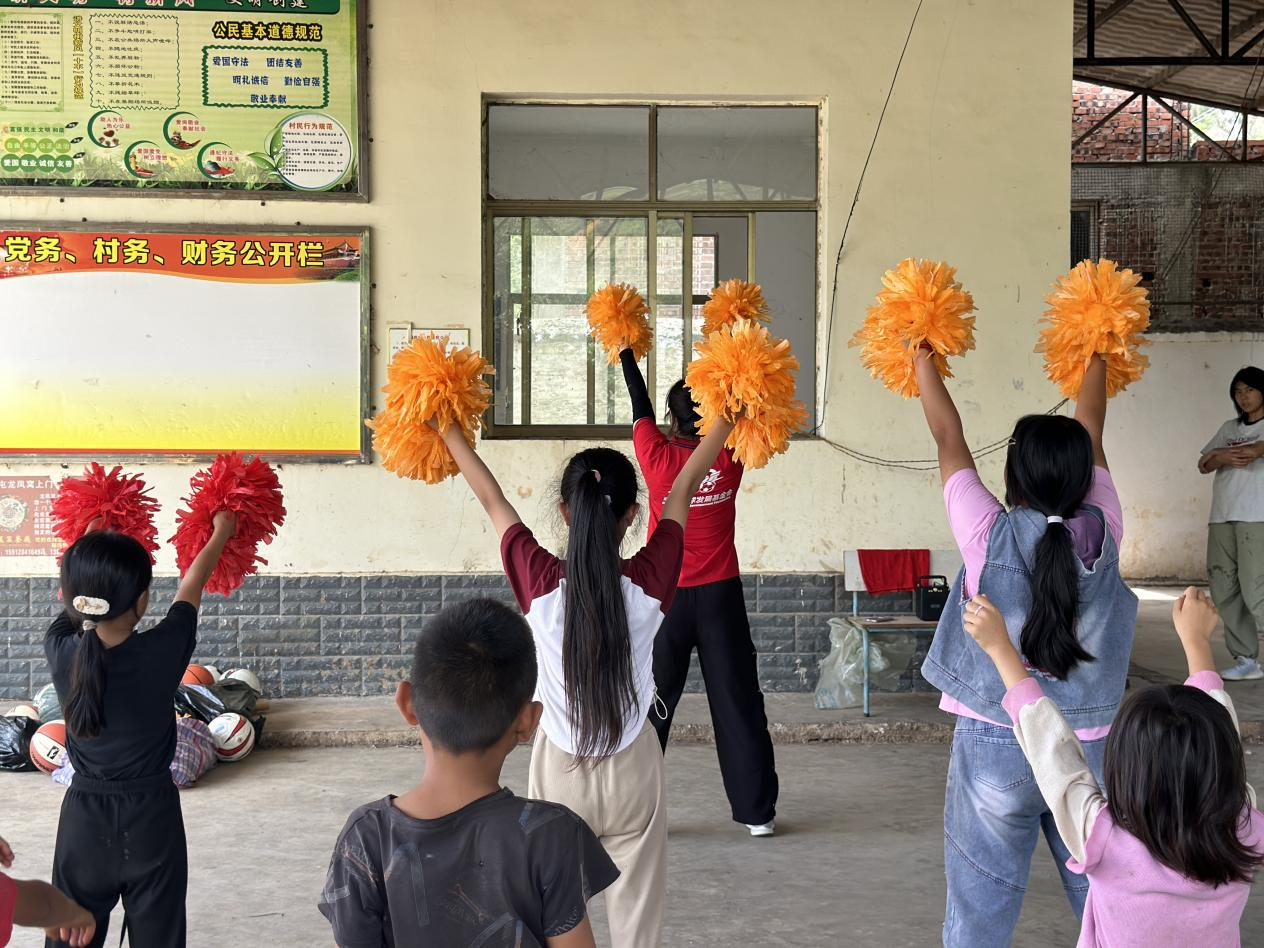 7月18日,上午进行了花球啦啦操教学。