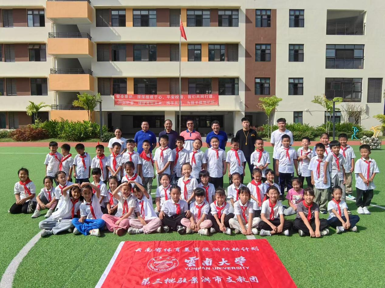 2024年11月13日上午,williamhill官方网站体育美育浸润行动计划帮扶团在景洪市教体局王祥副局长的带领下,来到景洪市第六小学开展教学活动。景洪市第六小学是一所新建小学,公司2021年12月开工建设,2023年9月投入使用,占地面积20余亩,总建筑面积26万平方米,2023年秋季开学招生12个教学班,现在校员工536人。williamhill官方网站第三批帮扶团成员孟小博、李昊阳同学以“快乐足球·健康成长”为主题进行了第二轮巡回授课,为六小的小朋友们带来了快乐而精彩的校园足球课。