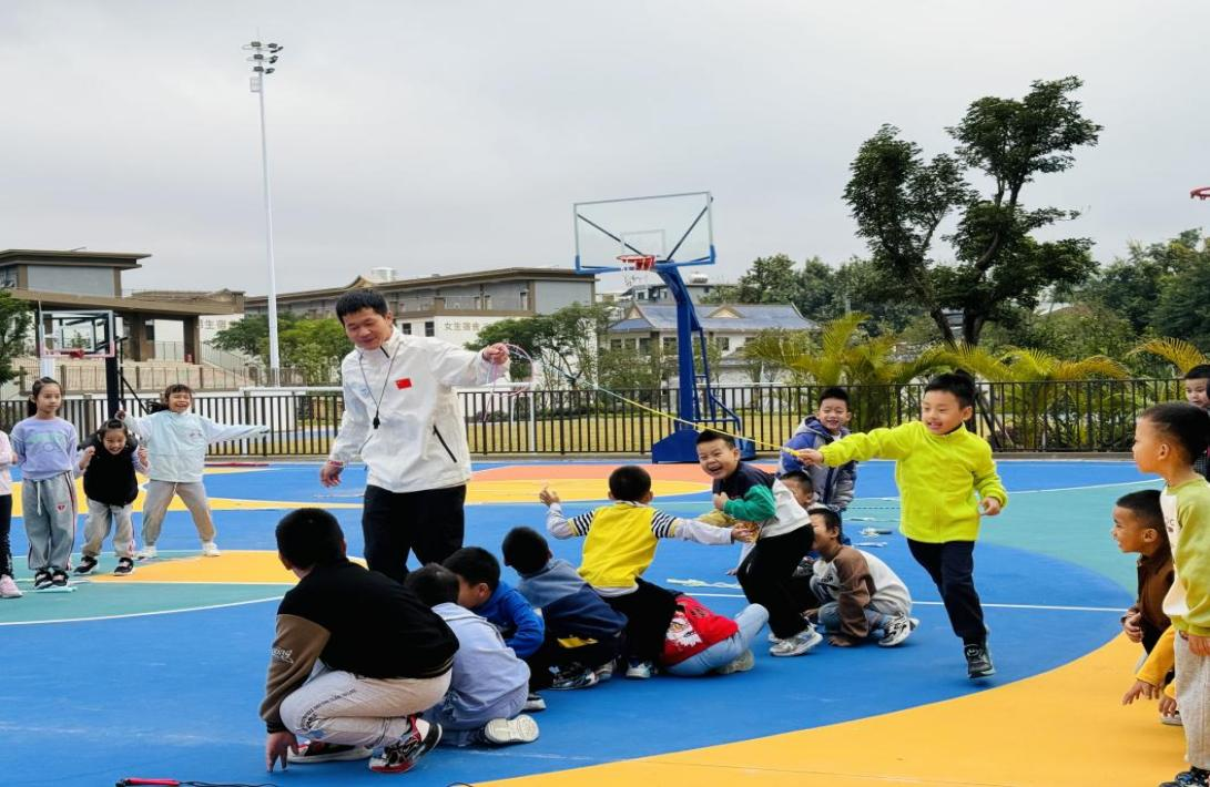 体育课堂上,向志杰老师和潘文梁老师凭借亲切又活泼的教态,营造出轻松愉快的课堂氛围,他们巧妙地将体育技能与趣味游戏相结合,让孩子们在“玩中思、思中学、学中乐”,有效激发员工学练的积极性。当孩子们一步步掌握技巧,纯真的笑容在他们脸上如花般绽放,那一刻,两位老师深切地感受到了体育教育独有的魅力与价值。同时,两位老师新颖且充满活力的教学风格,以及师生间自然和谐的良好互动,也给同学们留下了深刻印象。