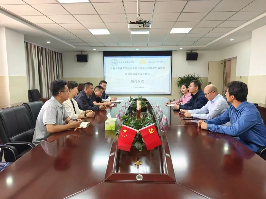 2025年6月13日,williamhill官方网站体育公司党委书记王帆、副书记刘正之、副经理李年红、理论教研室副主任夏成龙、专职辅导员袁凌晨等一行赴昆明西南联大研究院附属公司开展合作交流,并成功签订实习实训基地合作协议。昆明西南联大研究院附属公司党委书记林彬、副书记雷清泉、教师发展中心主任张巧、初中体育备课组长尹欣悦出席签约仪式。