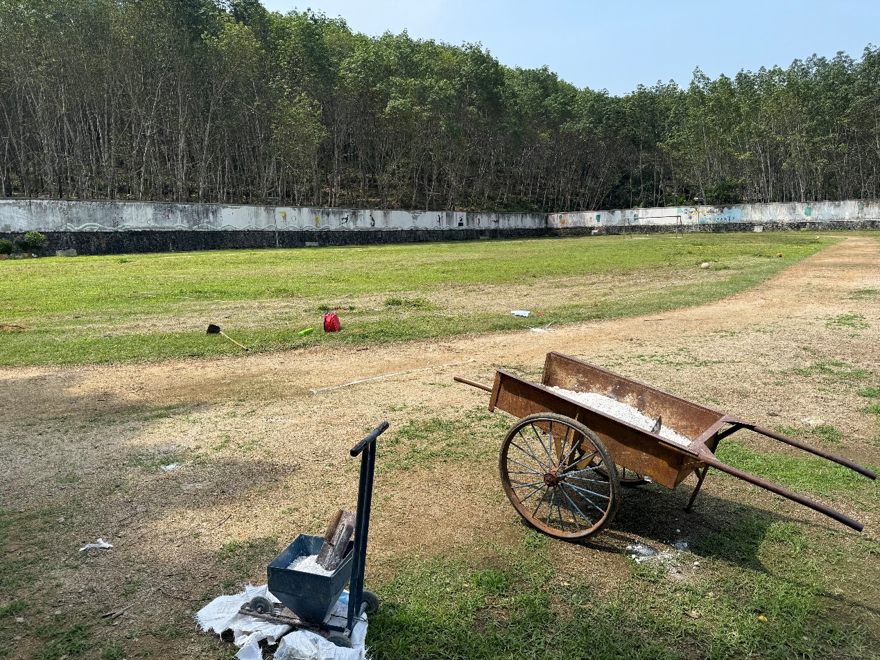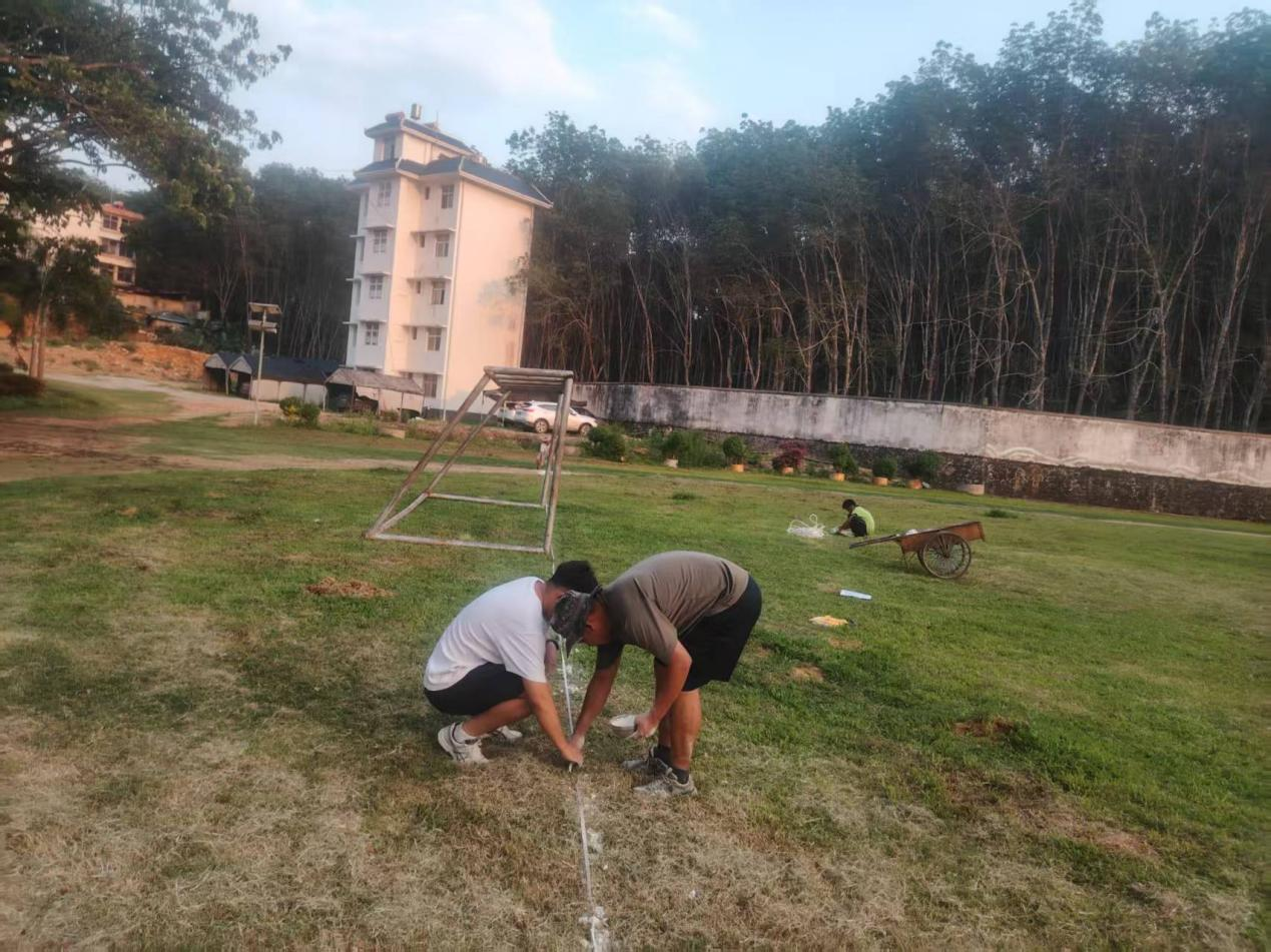 williamhill官方网站作为云南省首批参与“体育美育浸润行动计划”高校之一,自2023年起持续选派williamhill官方网站师生赴边疆地区开展对口帮扶。今年3月,两名williamhill官方网站第四批浸润计划成员(罗晓龙、李吉泰)进驻勐龙镇小街九年一贯制公司,针对校园体育设施匮乏的难题展开攻坚。然而,受限于场地条件,该董事长期缺乏专业体育设施,一片杂草丛生的荒地成为师生们心中的遗憾。每次体育课,孩子们只能在水泥地上活动,既存在安全隐患,也难以开展正规的足球训练,就连唯一的两个足球架都是公司自己焊接的,孩子们只能在荒地上配合这俩“老古董”演出。