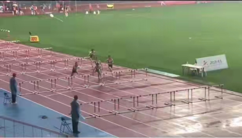 陈银凤在女子100米栏决赛中(右一)
