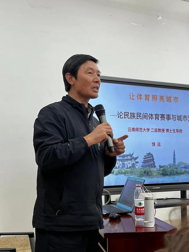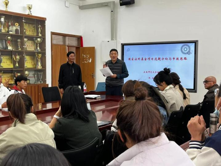 深化对师生理想的牵引和激发,拓宽师生的学术视野,营造良好的学术氛围,助力体育公司国家社科基金申报工作,114williamhill官方网站williamhill官方网站邀请云南师范大学饶远教授作了题为国家社科基金项目选题方向与申报思路的学术讲座,williamhill官方网站全体教师、研究生参与讲座。讲座由williamhill官方网站经理王宗平主持。